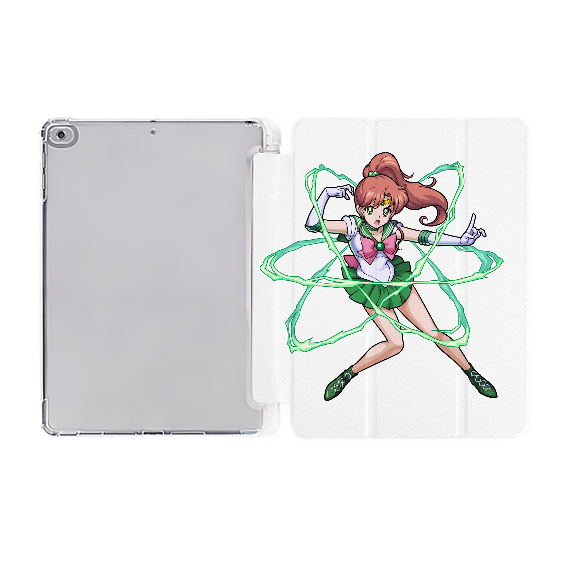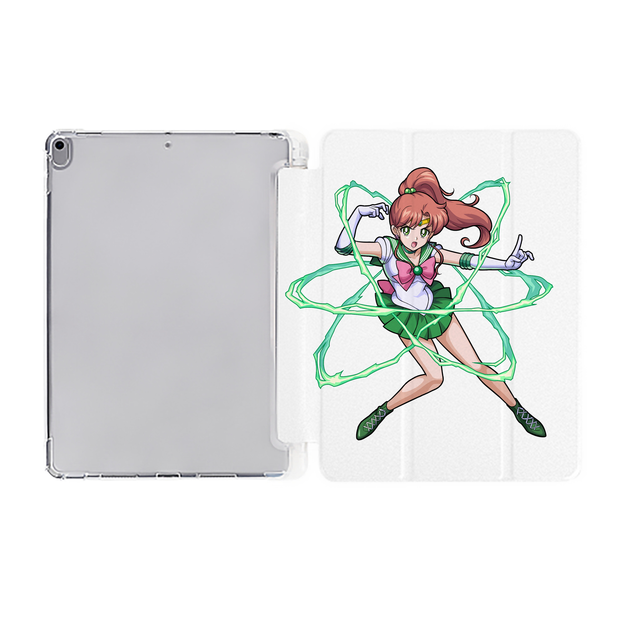 美少女戦士セーラームーン 木野 まこと きの まこと Sailor Moon Kino Makoto (セーラージュピター;Sailor Jupiter) IPad ケース ペン収納付き 三つ折りスタンド PUレザー×シリコン 対応機種9.5/10.5/10.9インチ